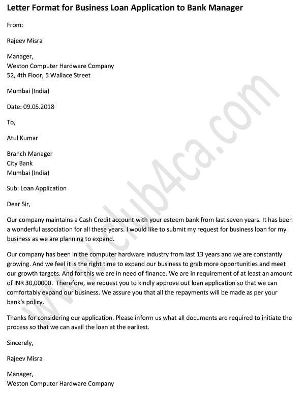 Business Loan Application Letter Format. Your manager or hr or addressing any letter to the write party is crucial as it is the start point of a conversation in a formal way and you would want this to start in the right foot. Short application for loan format.